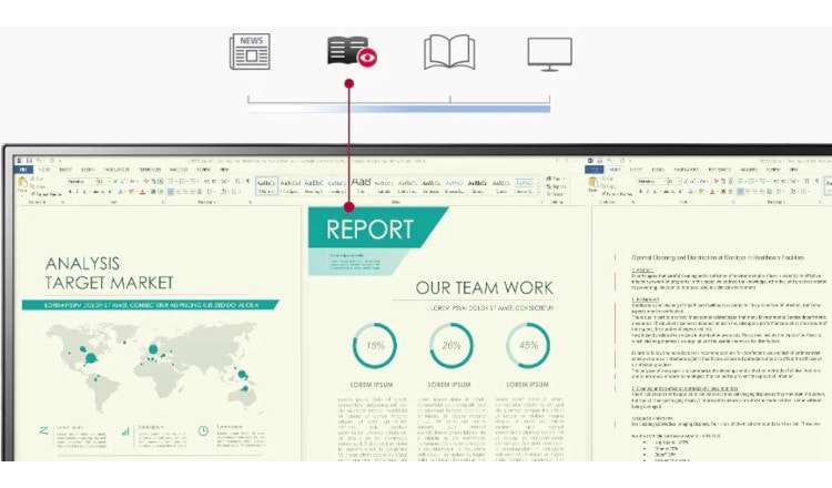 Με τη μείωση του μπλε φωτός για τη μείωση της κόπωσης των ματιών, η λειτουργία ανάγνωσης δημιουργεί μια οθόνη με θερμοκρασία χρώματος, παρόμοια με το χαρτί, η οποία παρέχει τις βέλτιστες συνθήκες ανάγνωσης.