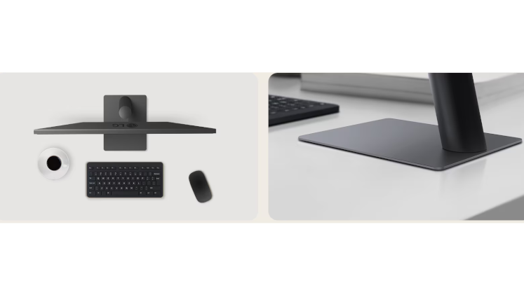 Η βάση σε σχήμα L παρέχει εργονομική άνεση με ρύθμιση κλίσης και υποστηρίζει τοποθέτηση σε τοίχο VESA 100×100 για ευέλικτη εγκατάσταση και βέλτιστη χρήση στον χώρο εργασίας.