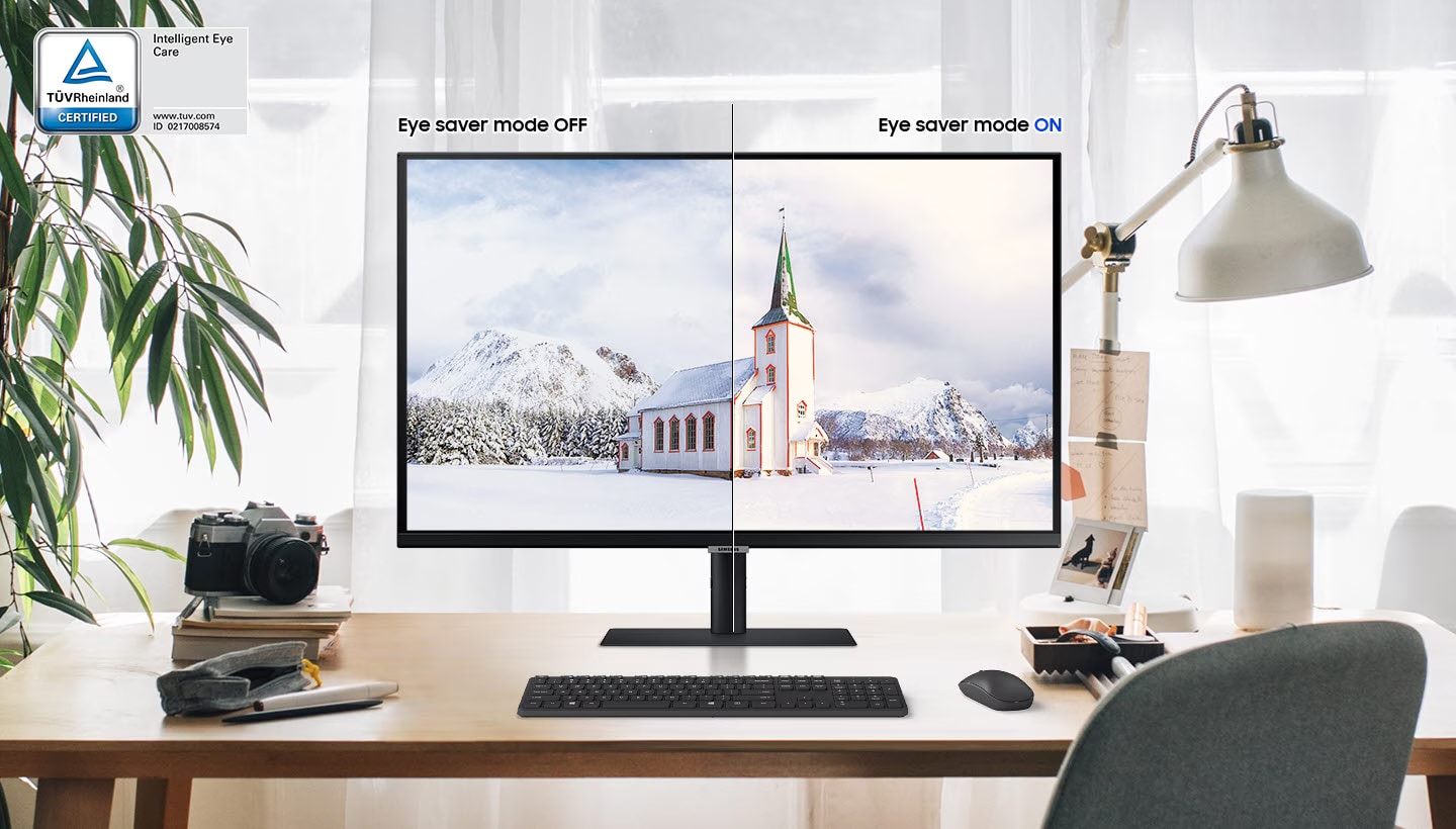 Κράτησε τα μάτια σου ξεκούραστα. Η φωτεινότητα και η θερμοκρασία χρώματος προσαρμόζονται αυτόματα, έτσι ώστε να απολαμβάνεις την κατάλληλη εικόνα ανάλογα με το περιβάλλον, για εκείνα τα project για τα οποία δουλεύεις αργά τη νύχτα. Χάρη στην πιστοποιημένη από την TUV τεχνολογία Intelligent Eye Care, η Samsung προστατεύει τα μάτια από τις υπερβολικές ποσότητες μπλε φωτός, με τις λειτουργίες Eye Saver Mode και Flicker Free.