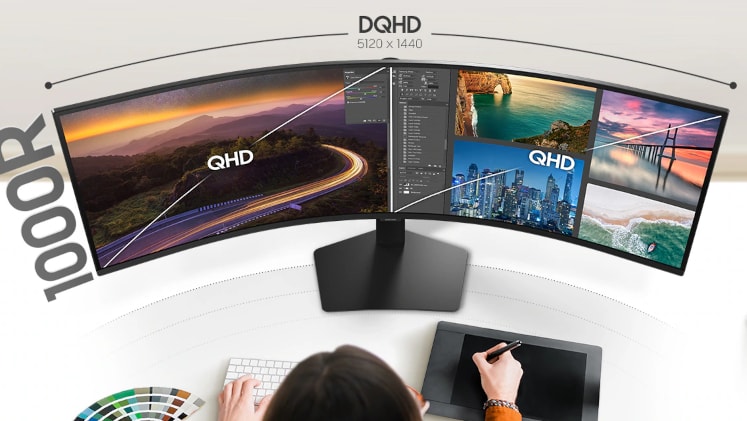 Αφέσου στην καθηλωτική εμπειρία της κυρτής οθόνης 1000R VA 49 ιντσών της Samsung ViewFinity S9. Με ανάλυση Dual QHD (5120 x 1440) και αναλογία 32:9, απολαμβάνεις ένα τεράστιο οπτικό πεδίο που αντιστοιχεί σε δύο οθόνες QHD δίπλα-δίπλα, χωρίς κανένα πλαίσιο να σε διακόπτει. Η καμπυλότητα 1000R αγκαλιάζει το οπτικό σου πεδίο, μειώνοντας την καταπόνηση των ματιών και προσφέροντας μια άνετη, πανοραμική θέαση για ατελείωτες ώρες εργασίας και δημιουργίας, όπου κάθε λεπτομέρεια είναι ευκρινής και ζωντανή.