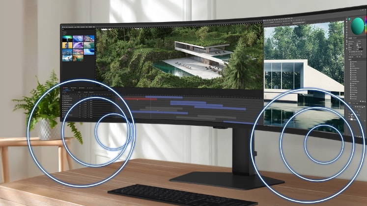Απόλαυσε κρυστάλλινο ήχο χωρίς την ανάγκη πρόσθετων περιφερειακών, χάρη στα ενσωματωμένα στερεοφωνικά ηχεία 2x5W της οθόνης Samsung ViewFinity S9. Αυτό απελευθερώνει χώρο στο γραφείο σου και μειώνει την ακαταστασία καλωδίων, δημιουργώντας ένα πιο οργανωμένο και αποδοτικό περιβάλλον εργασίας. Ο λεπτός και σχεδόν χωρίς πλαίσιο σχεδιασμός της οθόνης ενσωματώνεται άψογα σε κάθε επαγγελματικό χώρο, προσθέτοντας μια νότα κομψότητας και σύγχρονης αισθητικής, επιτρέποντάς σου να εστιάζεις πλήρως στο έργο σου.