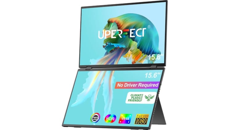 Η Uperfect UStation Delta είναι μια φορητή οθόνη 15,6 ιντσών με ανάλυση 1920x1080 (FHD) και τεχνολογία IPS, προσφέροντας εξαιρετική ποιότητα εικόνας και ευρεία γωνία θέασης 178°. Το HDR και η κάλυψη του 100% του χρωματικού φάσματος sRGB εξασφαλίζουν ζωντανά χρώματα και καθαρότητα. Η καινοτόμος σχεδίαση με διπλή οθόνη επιτρέπει την ευέλικτη τοποθέτηση και την ανεξάρτητη χρήση των οθονών για αυξημένη παραγωγικότητα. Οι 2 USB-C και 2 mini HDMI θύρες εξασφαλίζουν συμβατότητα με πολλές συσκευές. Η τεχνολογία Ucare μειώνει την εκπομπή μπλε φωτός, προστατεύοντας τα μάτια σας.