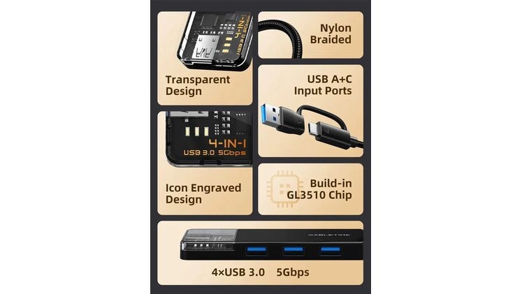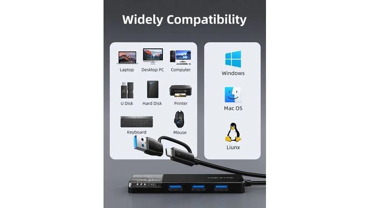 Αυτό το USB Hub διαθέτει διπλή είσοδο, τόσο USB-A όσο και USB-C, προσφέροντάς σου απίστευτη ευελιξία. Μπορείς να το συνδέσεις σε ένα ευρύ φάσμα συσκευών, από παλαιότερα laptops και desktops μέχρι τα πιο σύγχρονα MacBook Pro/Air και συστήματα gaming όπως το PS5. Αυτή η ευρεία συμβατότητα εξασφαλίζει ότι το hub σου θα είναι πάντα έτοιμο για χρήση, ανεξάρτητα από τη συσκευή που επιλέγεις να χρησιμοποιήσεις. Δεν χρειάζεται να ψάχνεις για διαφορετικούς αντάπτορες, απλά συνδέεις και αρχίζεις να δουλεύεις άμεσα, απλοποιώντας την καθημερινότητά σου και μειώνοντας την ακαταστασία καλωδίων.