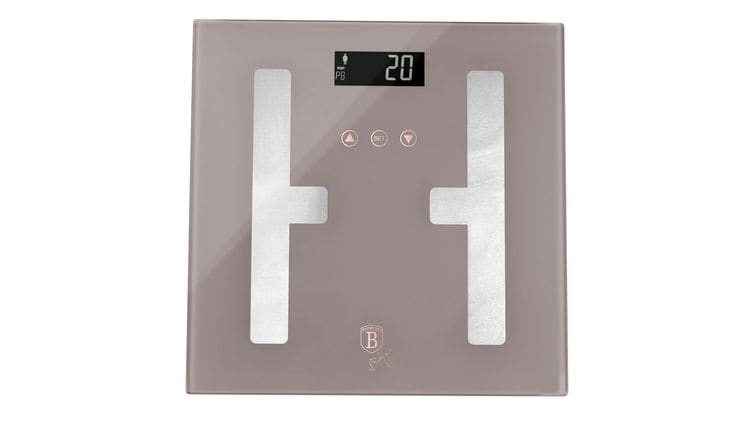 Η ψηφιακή ζυγαριά σώματος BERLINGER HAUS BH-9757 σε κομψό καφέ χρώμα προσφέρει ολοκληρωμένη ανάλυση σύστασης σώματος: λιπώδης μάζα, μυϊκή μάζα, οστά, νερό και ΔΜΣ.