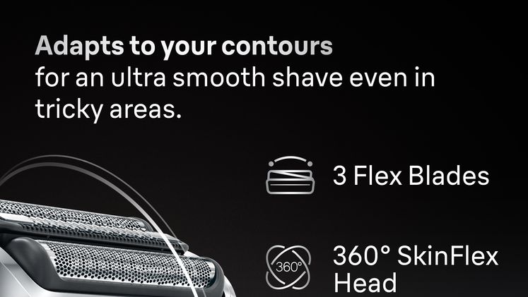 Η μοναδική κεφαλή 360° SkinFlex της Braun Series 7 είναι το μυστικό για ένα άψογο ξύρισμα. Προσαρμόζεται πλήρως στις καμπύλες του προσώπου σου, εξασφαλίζοντας μέγιστη επαφή με την επιδερμίδα σε κάθε σημείο, ακόμα και στα πιο δύσκολα σημεία όπως το πηγούνι ή ο λαιμός. Αυτό σημαίνει πως δεν θα χρειαστεί να περνάς ξανά και ξανά από το ίδιο σημείο, απολαμβάνοντας ένα απίστευτα λείο αποτέλεσμα με λιγότερο ερεθισμό και περισσότερη άνεση στην καθημερινότητά σου.