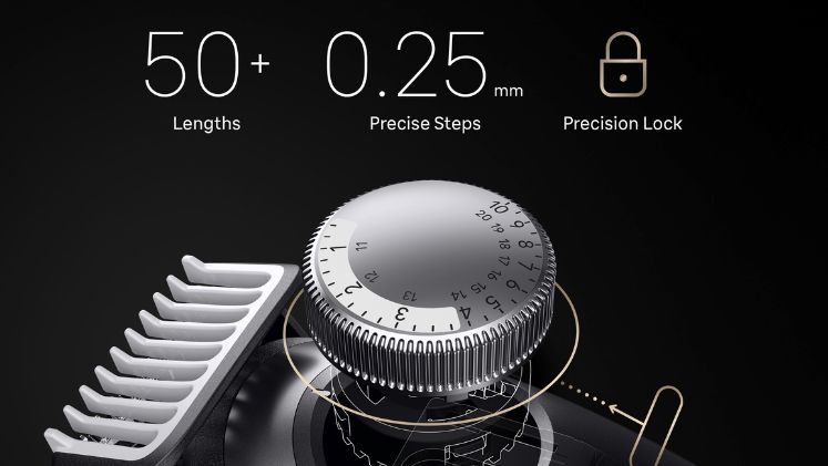Διαθέτει 50 ρυθμίσεις μήκους (0,5–20mm), κλείδωμα ρύθμισης και μπαταρία λιθίου με 180 λεπτά αυτονομίας και γρήγορη φόρτιση 5 λεπτών.