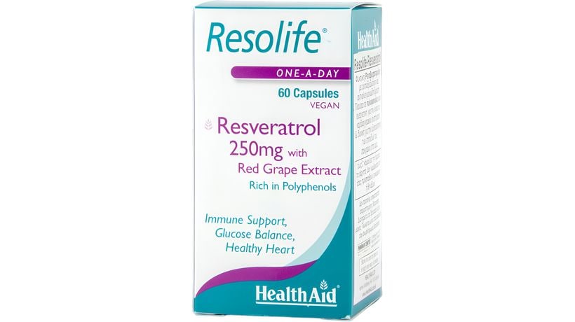 Το συμπλήρωμα διατροφής Resolife της Health Aid περιέχει δύο υψηλής ποιότητας εκχυλίσματα από το φυτό Giant Knotweed με 250mg ρεσβερατρόλης και από κόκκινο σταφύλι με 30% πολυφαινόλες, για μεγαλύτερο φάσμα βιολογικής δράσης.