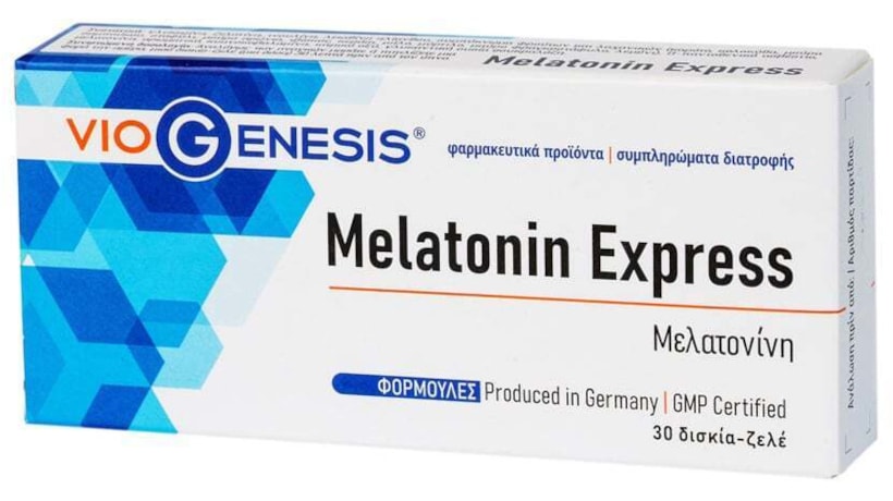 Το συμπλήρωμα διατροφής Melatonin Express της Viogenesis µία πατενταρισµένη µορφή µελατονίνης σε δισκία-ζελέ για άµεση απορρόφηση. Συµβάλλει στην ανακούφιση από το υποκειµενικό αίσθηµα του τζετ λαγκ και στη µείωση του χρόνου επέλευσης του ύπνου.