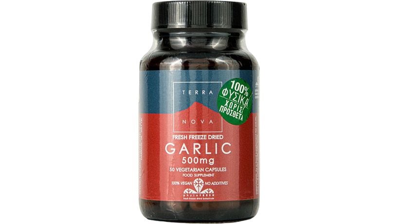 Το συμπλήρωμα διατροφής Garlic 500mg, της Terranova περιέχει σκόρδο επεξεργασμένο με τη μέθοδο της φρέσκιας ψυχρής ξήρανσης (fresh freeze dried) ώστε το τελικό προϊόν να διατηρεί τη διατροφική ποιότητα και γεύση του φρέσκου.