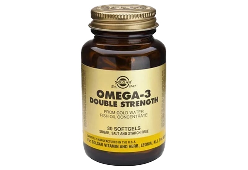 Το συμπλήρωμα διατροφής Omega-3 Double Strength της Solgar προέρχεται από συμπυκνωμένο λάδι ψαριών ανοικτής θαλάσσης και παρέχει υψηλής ισχύος ουσιώδη λιπαρά οξέα Ωμέγα 3 ψυχρής πίεσης και χωρίς πρόσθετα.