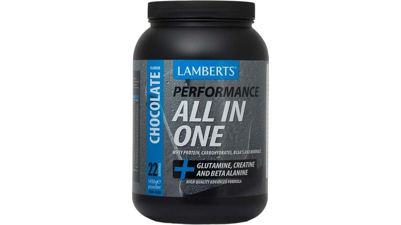H πρωτεΐνη All In One Performance Powder Chocolate της Lamberts, είναι υψηλής ποιότητας και καθαρότητας πρωτεΐνη ορού γάλακτος, ενισχυμένη με υδατάνθρακες, γλουταμίνη, κρεατίνη και βήτα-Αλανίνη. Aποτελεί ένα από τα κορυφαία All-In-One προϊόντα αθλητικής διατροφής.