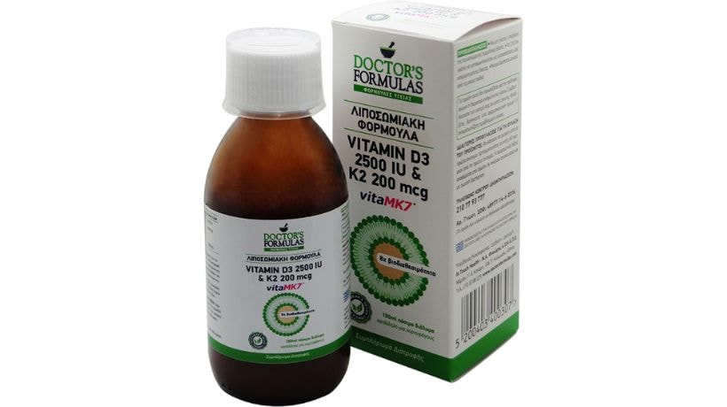 Το συμπλήρωμα διατροφής Vitamin D3 2500iu + K2 200mcg της Doctor's Formulas σε μορφή πόσιμου διαλύματος περιέχει τις βιταμίνες D3 και Κ2, οι οποίες συμβάλλουν στη διατήρηση των φυσιολογικών επιπέδων ασβεστίου στο αίμα και της φυσιολογικής κατάστασης των οστών .