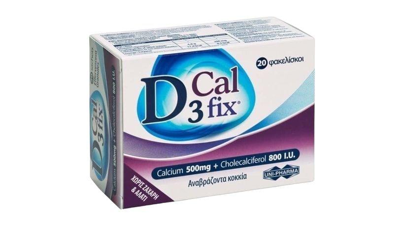 Το συμπλήρωμα διατροφής Vitamin D3 Cal Fix της Uni-Pharma περιέχει ασβέστιο το οποίο συμβάλλει στην φυσιολογική πήξη του αίματος, στη φυσική λειτουργία των μυών, στη φυσιολογική νευροδιαβίβαση και στη φυσιολογική λειτουργία των πεπτικών ενζύμων.