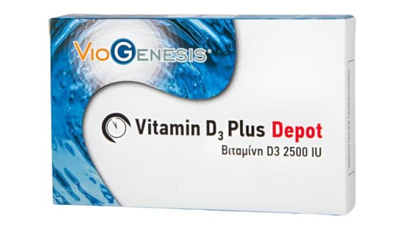 To συμπλήρωμα διατροφής Vitamin D3 Plus Depot 2500IU της Viogenesis περιέχει βιταμίνη D3 ενισχυμένη με βιταμίνη C και ψευδάργυρο, φαρμακοτεχνικής μορφής δισκίων DEPOT, πατέντα η οποία επιτρέπει, χάρη στην ειδική επικάλυψη, την βραδεία αποδέσμευση των μικροδιατροφικών ουσιών στον οργανισμό και προσδίδει μεγαλύτερη αναλογία αφομοίωσης τους.