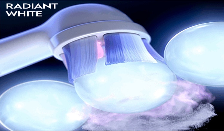 Η Oral-B iO Radiant White συνδυάζει τις ίνες με τέλεια γωνία και τα εξαρτήματα γυαλίσματος για προηγμένο καθαρισμό και πιο λευκά δόντια.