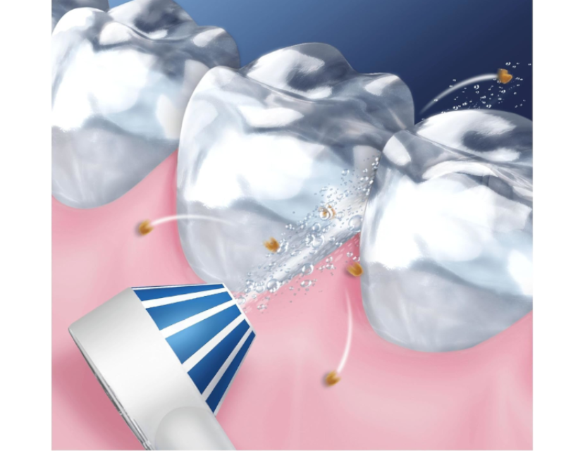 Η τεχνολογία Oxyjet της Oral-B αναμιγνύει αέρα και νερό, εμπλουτίζοντας το νερό με μικρο-φυσαλίδες που ενισχύουν τη δράση του καθαρισμού των δοντιών και των ούλων.