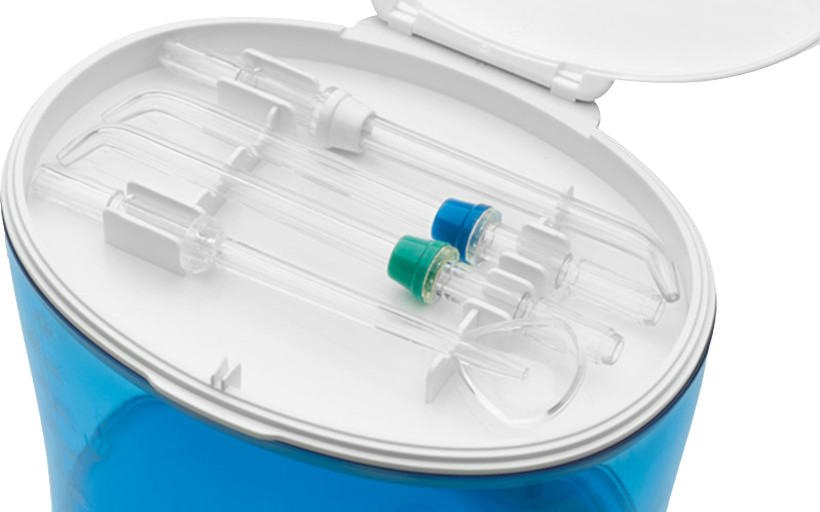 Μπορείς να αποθηκεύσεις όλα τα εξαρτήματα που χρησιμοποιείς για τον καθαρισμό του στόματος στην εργονομική και βολική θήκη που βρίσκεται στο πάνω μέρος της συσκευής. Όλα μαζεμένα σε ένα σημείο για να μη τα χάνεις ή να σκονίζονται.