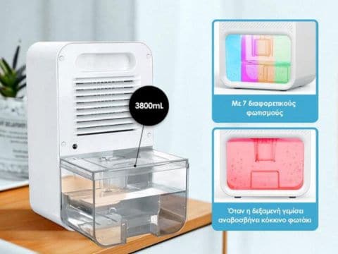 Με χωρητικότητα δοχείου 3800ml, λειτουργεί αδιάκοπα για 3-4 ημέρες χωρίς εκκένωση, ενώ ο αισθητήρας υπερχειλίσεων εξασφαλίζει αυτόματο σταμάτημα όταν γεμίσει. Οι διαστάσεις του και η πρακτική χειρολαβή επιτρέπουν εύκολη μετακίνηση σε όλο το σπίτι, ακόμα και σε διακοπές.