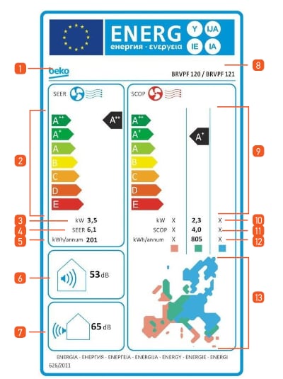 Ο νέος τρόπος βαθμονόμησης της απόδοσης των κλιματιστικών αντανακλάται στην νέα ενεργειακή ετικέτα σήμανσης, η οποία περιέχει πληροφορίες για την ισχύ, την απόδοση, την ετήσια κατανάλωση σε ψύξη και θέρμανση, αλλά και την στάθμη θορύβου των μηχανημάτων.