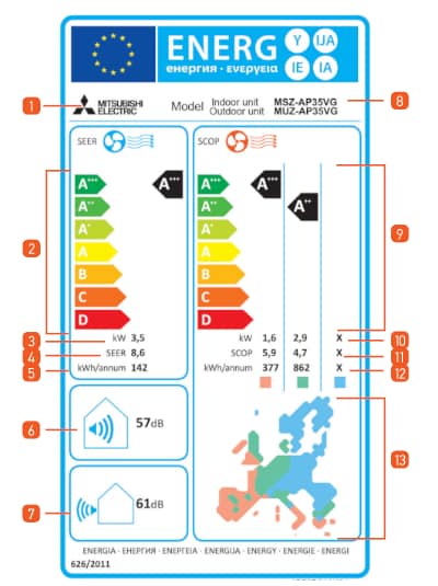 Ο νέος τρόπος βαθμονόμησης της απόδοσης των κλιματιστικών αντανακλάται στην νέα ενεργειακή ετικέτα σήμανσης, η οποία περιέχει πληροφορίες για την ισχύ, την απόδοση, την ετήσια κατανάλωση σε ψύξη και θέρμανση, αλλά και την στάθμη θορύβου των μηχανημάτων.