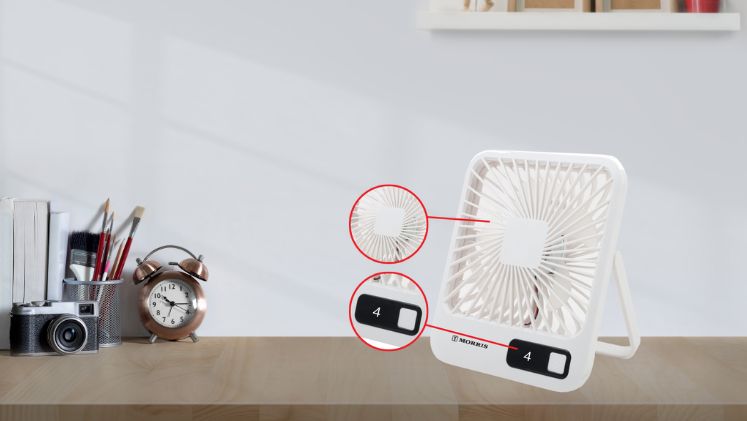 Ο Mini ανεμιστήρας της Morris είναι η ιδανική λύση για να αντιμετωπίσεις τη ζέστη στο γραφείο. Με ισχυρό DC μοτέρ 3.5W, προσφέρει μεγάλη απόδοση με ελάχιστο θόρυβο, διασφαλίζοντας μια δροσερή και ήσυχη ατμόσφαιρα στον χώρο εργασίας σου.