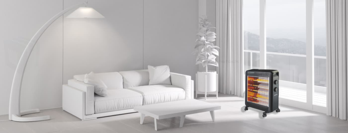 Θερμάστρα χαλαζία CRYSTAL HOME 17800 με 2 ρυθμίσεις ισχύος 1100W/2200W και 4 λαμπτήρες θερμαντικών στοιχείων χαλαζία με εξαγωγή θερμότητας και στο άνω μέρος, ρυθμιζόμενο θερμοστάτη και υψηλής ποιότητας ανακλαστήρα από ανοξείδωτο χάλυβα για καλύτερη απόδοση.