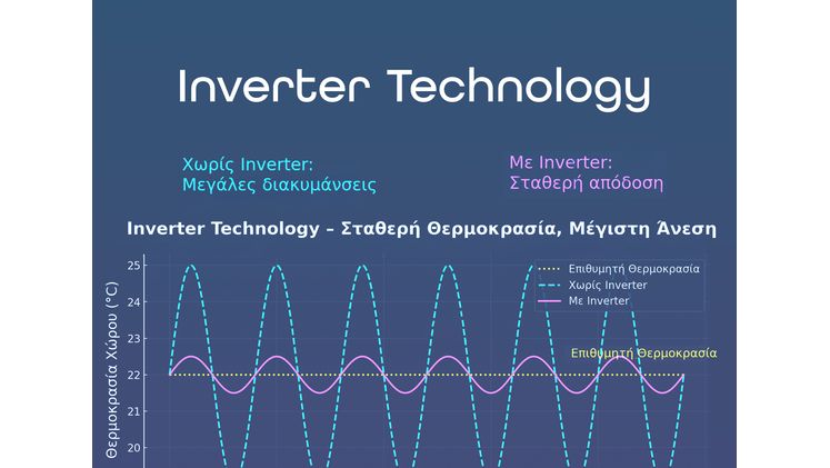 Η τεχνολογία Inverter φροντίζει για τη σταθερή θερμοκρασία στο χώρο σου, αποφεύγοντας τις απότομες εναλλαγές που αυξάνουν την κατανάλωση.