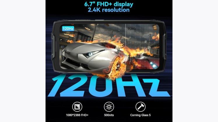 Αναβάθμισε την εμπειρία σου με την οθόνη των 6.7 ιντσών του BV9300 Pro, που διαθέτει ρυθμό ανανέωσης 120Hz, προσφέροντας υπέροχη ομαλότητα κατά την παρακολούθηση αγαπημένων ταινιών ή παιχνιδιών. Η τεχνολογία αυτή προσαρμόζεται έξυπνα για χαμηλότερου ρυθμού περιεχόμενο, όπως το διάβασμα ή το σερφάρισμα, εξοικονομώντας ενέργεια. Με την ανθεκτικότητα του Corning Gorilla Glass 5, η οθόνη είναι ανθεκτική σε γρατζουνιές και φθορές, διασφαλίζοντας μακροχρόνια χρήση και ασφαλή οπτική εμπειρία.