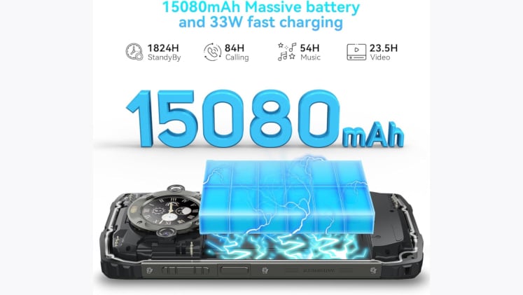 Με τη 15.080mAh μπαταρία του Blackview BV9300 Pro, η ανάγκη για επαναφόρτιση είναι παρελθόν. Απολαμβάνεις μέχρι 76 ημέρες συνεχούς χρήσης σε κατάσταση αναμονής, ενώ οι δραστηριότητές σου, από το gaming και τη μουσική μέχρι την παρακολούθηση βίντεο και τις κλήσεις, συνεχίζονται χωρίς ανησυχία για την μπαταρία.