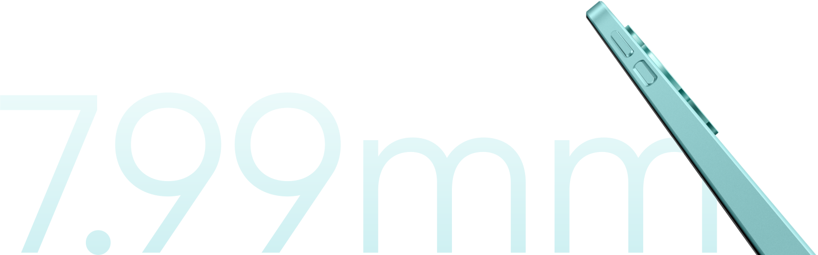 Επιπλέον, το τηλέφωνο διαθέτει λεπτό σώμα με πάχος μόλις 7,99 χιλιοστών και έχει ελαφριά αίσθηση στο χέρι. Η πλευρική σχεδίαση με γωνία C προσδίδει ένα οπτικά εκπληκτικό σχεδιασμό στο τηλέφωνο, ενώ εφαρμόζεται τέλεια στο χέρι.