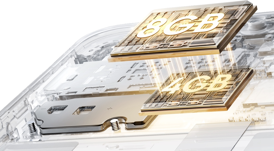 Ο αποθηκευτικός χώρος 128GB ROM σου προσφέρει αρκετό χώρο για να αποθηκεύσεις όλες τις αγαπημένες σου φωτογραφίες, βίντεο, παιχνίδια και ταινίες. Η δυναμική επέκταση μνήμης RAM (DRE) σου δίνει επιπλέον ισχύ όταν τη χρειάζεσαι. Με ενσωματωμένη μνήμη RAM 4GB και επιπλέον 4GB διαθέσιμα μέσω της τεχνολογίας DRE, μπορείς να εκτελείς περισσότερα ταυτόχρονα.