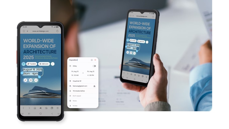 Με το Galaxy XCover7 Pro βρίσκεις ό,τι χρειάζεσαι στη στιγμή με το Circle to Search της Google. Κυκλώνεις, σημειώνεις ή πατάς σε εικόνες, βίντεο ή κείμενο και κάνεις άμεση αναζήτηση χωρίς να αλλάζεις εφαρμογή. Οργάνωσε τη δουλειά σου εύκολα με το AI Object Eraser που αφαιρεί ανεπιθύμητα στοιχεία και καλύπτει το φόντο αυτόματα. Εξοικονόμησε χρόνο και κράτα τις εικόνες σου καθαρές για παρουσιάσεις και επαγγελματικές αναφορές!