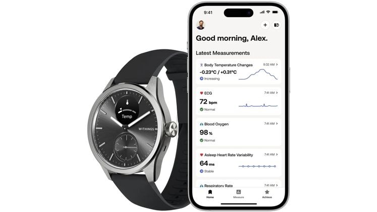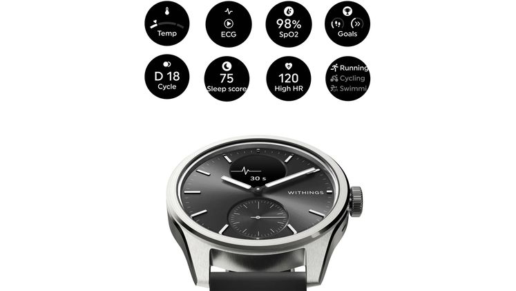 Γνώρισε το ScanWatch 2 από την Withings, το ανανεωμένο υβριδικό έξυπνο ρολόι που παρακολουθεί ζωτικές παραμέτρους υγείας και βελτιώνει τη φυσική σου κατάσταση. Με το νέο Health Sense OS 3, αξιοποιεί τεχνητή νοημοσύνη για πιο ακριβείς μετρήσεις. Σχεδιασμένο από επαγγελματίες και ειδικούς του χώρου της υγείας, διαθέτει ηλεκτροκαρδιογράφημα ιατρικού επιπέδου, παρακολουθεί αναπνευστικές διαταραχές κατά τον ύπνο και τα επίπεδα οξυγόνου στο αίμα.