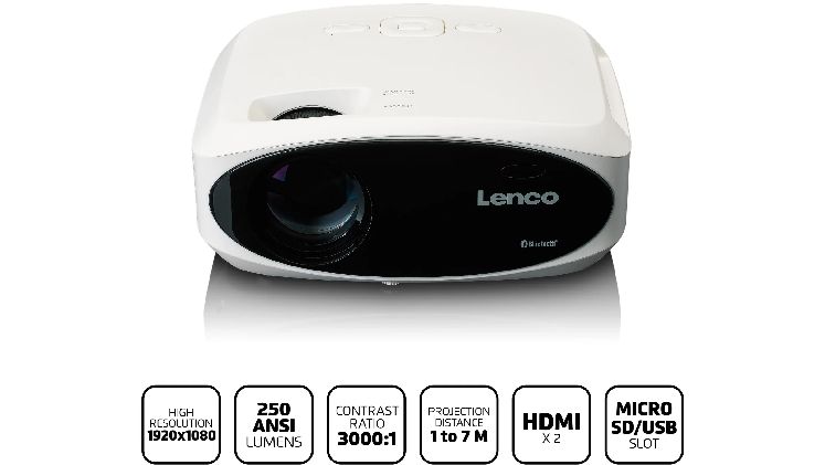 Ο προτζέκτορας LCD LPJ-900WH της Lenco προσφέρει ευκρίνεια στην προβολή ταινιών, παιχνιδιών και παρουσιάσεων. Είναι εύκολος στη μεταφορά και χρήση, διαθέτει ενσωματωμένα στερεοφωνικά ηχεία και Bluetooth για ασύρματη μετάδοση ήχου. Υποστηρίζει HDMI, USB και SD είσοδους.