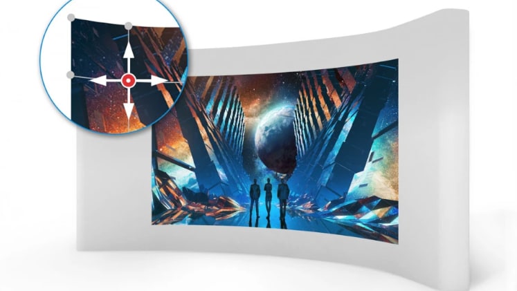 Ποιος είπε ότι η προβολή λειτουργεί μόνο σε επίπεδη επιφάνεια; Με το προηγμένο εργαλείο στρέβλωσης του προβολέα, η παραμορφωμένη εικόνα μπορεί να διαμορφωθεί τέλεια μέσω πολλαπλών ρυθμίσεων σημείων, ακόμη και όταν προβάλλεται σε σφαιρικό σχήμα, κύλινδρο κ.λπ.