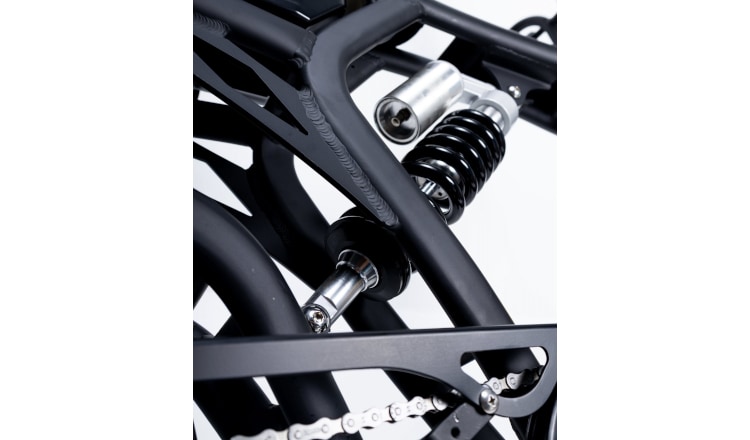 Η ανάρτηση πλαισίου προσφέρει μεγάλη άνεση στον αναβάτη.Το ελατήριο της ανάρτησης είναι κατασκευασμένο από αλουμίνιο και αποτελεί μια απολαυστική εμπειρία οδήγησης.