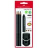 Σετ που περιλαμβάνει 3 μολύβια, 1 γόμα & 1 τριπλή ξύστρα Faber Castell Grip σε μαύρο χρώμα.