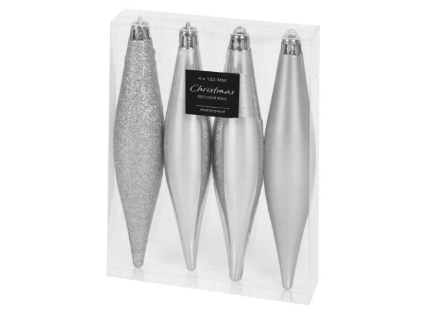 Σετ Χριστουγεννιάτικα Στολίδια K-m Silver Can059648 Πλαστικό 4 Τμχ - Ρόμβος